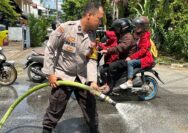Solar Tumpah Di Jalan Cendrawasih, Bhabinkamtibmas Polsek Pontianak Kota Gerak Cepat Lakukan Penyiraman