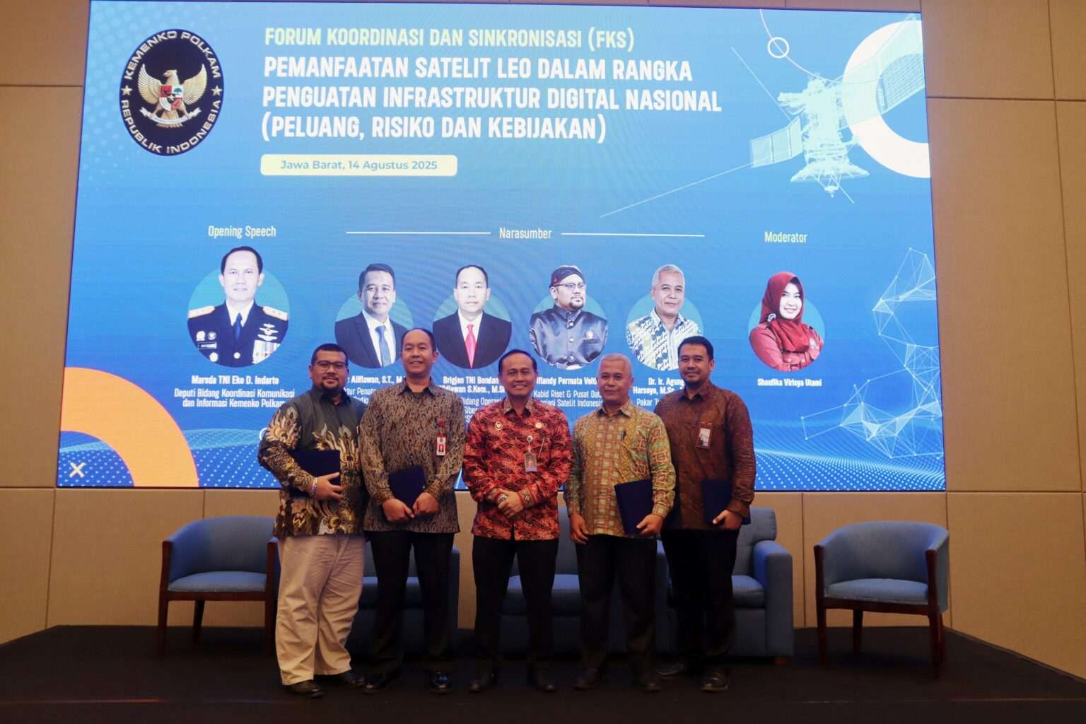 Demikian disampaikan dalam sambutan Deputi Bidang Koordinasi Komunikasi dan Informasi Kemenko Polkam yang dibacakan oleh Marsma TNI Agus Pandu Purnama, Asisten Deputi Koordinasi Telekomunikasi dan Informatika Kemenko Polkam pada acara “Forum Koordinasi dan Sinkronisasi Pemanfaatan Satelit LEO dalam rangka Penguatan Infrastruktur Digital Nasional” di Bekasi, Jawa Barat, Kamis (14/08/2025).