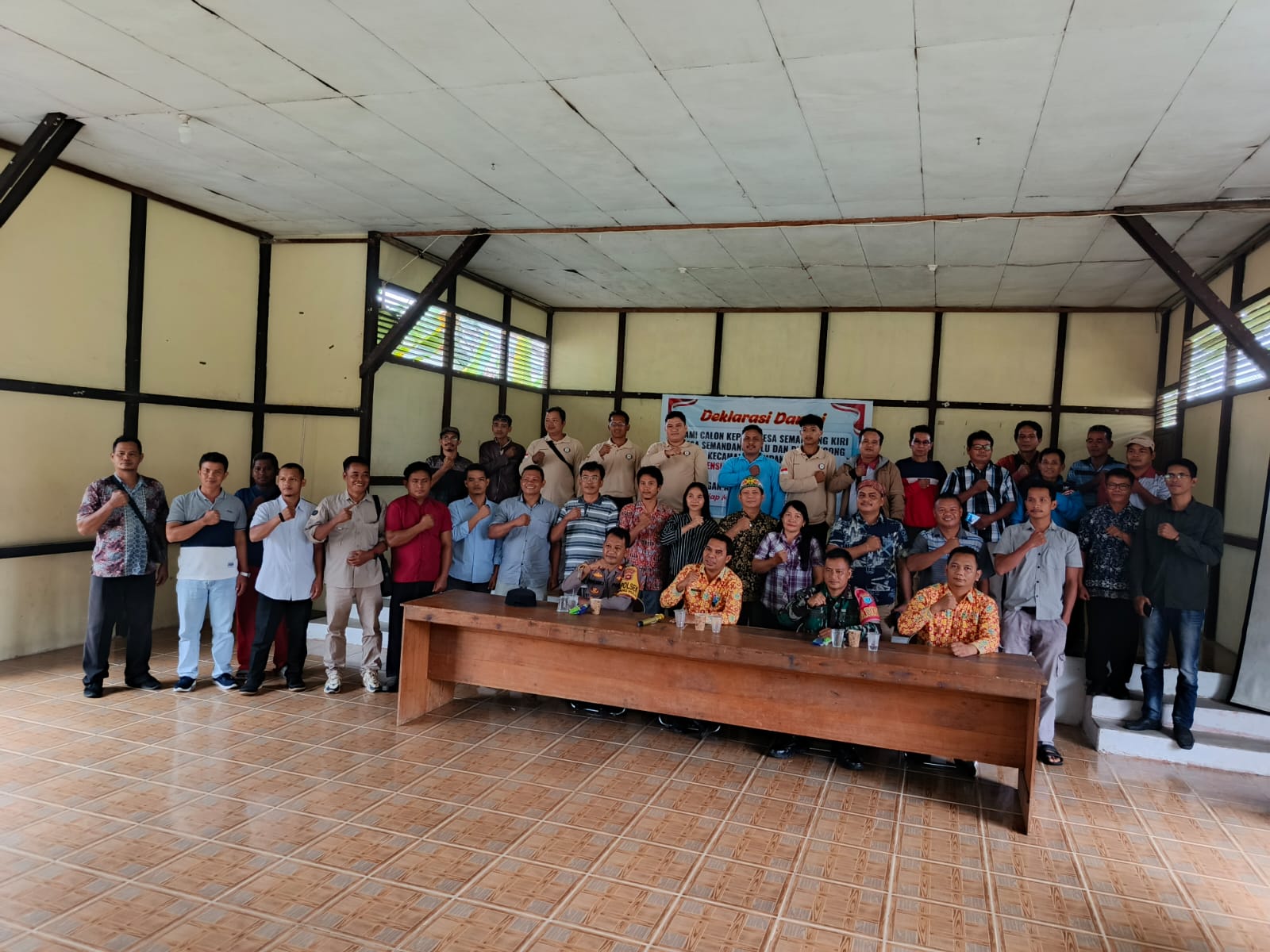 Deklarasi ditutup dengan penandatanganan kesepakatan damai oleh masing-masing calon Kades, disaksikan oleh Forkopimcam dan Ketua BPD, serta dilanjutkan dengan sesi foto bersama sebagai simbol persatuan dan komitmen bersama.