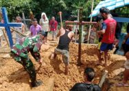 Personel Pos Panga Satgas Pamtas RI-Malaysia Yonarhanud 1/PBC/1 Kostrad Bantu Pemakaman Warga Perbatasan
